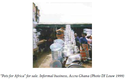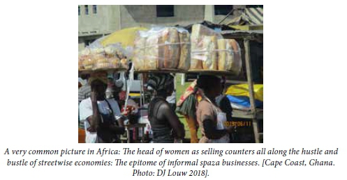 In fact, the real challenge to "dance with Deity" is not in the cathedrals of glass stained spaces filled with wealthy congregants, but in the informal structures of dirty pavements where people strive to survive. Thus, the focus of the article on the informal sector within the townships of Africa, embedded in the burgeoning microenterprise of informal undertakings; activities that can be rendered as "hidden", a kind of subterranean economy within what I want to call a "spaza mentality" as mode of surving extreme living conditions.