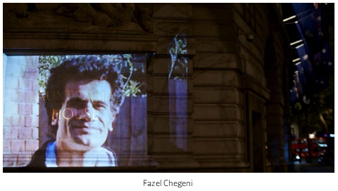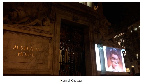Pa rt of the aesthetic and political power of the projection was that the images of Fazel Chegeni, Reza Berati and Hamid Khazaei appeared like ghosts on the walls of Australia House - at the literal physical border of Australian diplomatic territory - never to be permitted entry, just as in their short lives. In their appearance directly under the 'Awakening' and 'Prosperity' statutes, they interrupt the narrative of Australia conveyed by the building's architecture. Instead, the haunting projections of the victims of the Australian government's policies memorialised the reality of the country's past and ongoing racist violence, preserving and publicising the memories of these men.