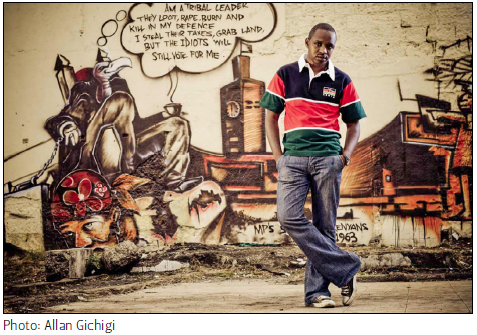 Mwangi is one of the most present individuals in Kenya's media opposing the clientelistic system. He became active in public debates due to a personal shock about the post-election violence and indignation about the injustice of the existing order. The critique of "tribalism" and greedy politicians implies a massive disappointment in the deficient public service for the majority of the population, especially in urban areas. The poor in Nairobi's slums live under harsh conditions. There is no reliable public transport and basic services from health to education to sanitation lack funding. Even middle-income Nairobians struggle to fulfill the expectations of their families with private schooling for kids, costly housing, and demands from needy relatives in the countryside.