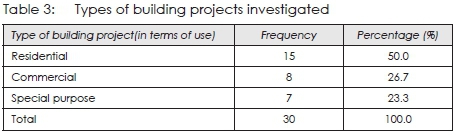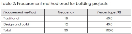 Table 2 shows the procurement methods used for the building projects investigated in the study.