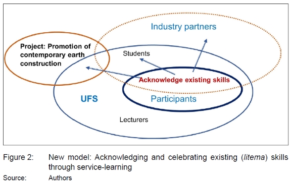 A recent conceptual method transformation in learning and teaching at the UFS' Department of Architecture provides new insight into participants' gerceptions of engagement between students and communities (see Figure 2). It was, however, extended to rural areas where natural earth -building skills are often practised. Through acts of reciprocity, the service-learning experience is not associated with charity; it is a shared experience with transformation (Pompa, 2002: 68).