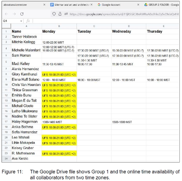 Clear and consistent communication was crucial during the COIL exchange. It was essential for outlining project expectations and deadlines and was accomplished through reminder e-mails. Communication helped prevent confusion if a deadline needed to be adjusted. WhatsApp was a useful tool for both the lecturers and the student groups. The seven-hour difference between Colorado and the Free State became a challenge, slowing decision-making if messages were replied to many hours later. However, this was a worthwhile challenge, as the main aim of a COIL is for the students to engage interculturally and cross-culturally, where students must get out of their comfort zones and engage with their peers.