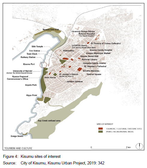 As noted in Table 3, the features were selected as vital for sociocultural and economic importance based on their ability to bring various people of diverse backgrounds together for the utilisation and use of the various services they offer as public features of the environment within Kisumu City.
