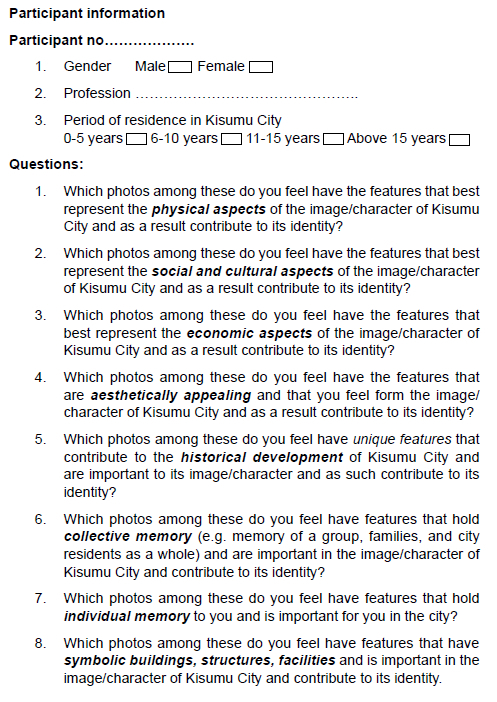 Use of photo-elicitation interviews to explore urban landscape identity in the context of urban renewal changes, a case of Kisumu City, Kenya