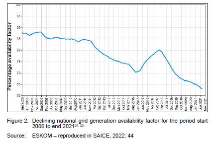 "the further degradation of social infrastructure [which] paints a dismal picture of the plight that ordinary people face to access basic services of water, sanitation, health, education, public transport and electricity. Altogether, the situation cries out for urgent and sustained attention" (SAICE, 2022: 7).12