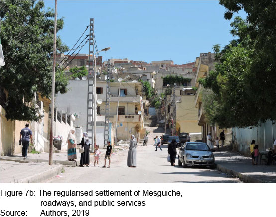Policies to manage urban informal settlements are a response to social, political and land-related challenges. The manner in which governments deal with informal urbanisation is related to the history of relationships between state and society (Semmoud, 2015). In the case of illegal urban settlements, two solutions are considered, namely cancellation or recognition of illegal housing. In general, interventions by public authorities in the informal settlements of Lalaouia and Mesguiche reflect a tolerant attitude towards these informal settlements. This attitude could be explained by the fact that local authorities were not in a position to envisage their removal. Therefore, an implicit recognition of the phenomenon. In fact, local authorities in the informal settlements of Lalouia and Mesguiche adopted an approach that combines physical upgrading and land titling.