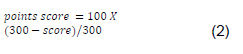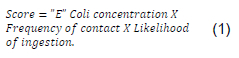 The frequency of contact, "E" Coli concentration, and likelihood of ingestion may depend on type of sanitation technology used (how often waste is emptied, whether waste is wet or dry and method of emptying the waste). The number of points scored are given by equation 2:
