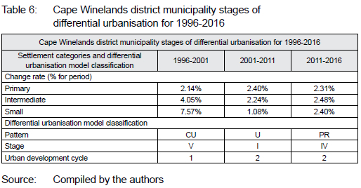 The differential urbanisation model was tested, using the three settlement categories for the Cape Winelands district municipality, including Stellenbosch, Drakenstein, Witzenberg, Breede Valley, and Langeberg local municipalities.