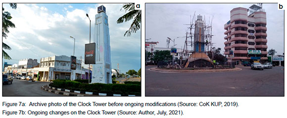 Document analysis examined urban development plans and policy documents that provided the context for studying urban landscape identity, and public participation within ongoing and completed urban renewal projects. Kisumu's situational analysis for 2019 (Cok KUP, 2019) provided a good background for the study in terms of sites of interest in Kisumu and other demographic characteristics. Some photos of sites of interest in Kisumu such as the Old Clock Tower (Photo 3 in Figure 7) were also retrieved from the soft copy records at the GIS department within the City Planning Department.