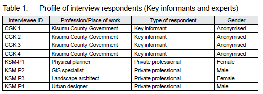 The researcher purposively selected the experts, due to their involvement in the management of the city as well as in the planning and implementation of the various urban renewal projects at the time of the study. Those interviewed included the City Director of Planning and Chief Officer of Lands, Housing and Physical Planning of CGK. The CGK key informants were labelled as CGK 1 to CGK 4. Four practising professionals were also picked for responses as experts. They were named KSM-P1 to KSM-P4. Table 1 summarises the profiles of the interviewees.