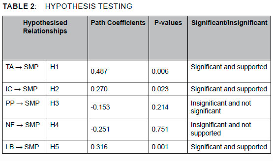 The first hypothesis (H1 - trust/authenticity is positively and directly related to a customer's social media platform use) has a path coefficient of 0.487 and a P-value of 0.006. This relationship is both supported and significant at p<0.01. This finding suggests that the more consumers trust or believe in a social media influencer, the more they engage in continuous use of the particular social media platform. It should be noted that of all the relationships, this was the strongest.
