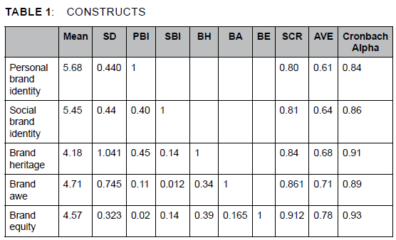 Table 1 highlights the constructs employed in the research, presenting them as means and standard deviations to offer an overview of the interrelationships among the constructs that contain the correlations.