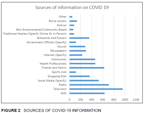 The sources of information in Figure 2 demonstrate varied access by audiences to COVID-19 information spanning various contexts of communication, including interpersonal, mass and digital communication. Interpersonal communication involved health professionals, community members, friends, and family. Within the public communication context, mainstream media were accessed by the audiences including television, radio, billboards, and posters. Digital and social media were widely used, including messages on South Africans' mobile phones, in their interpersonal networks, and on social media networks.