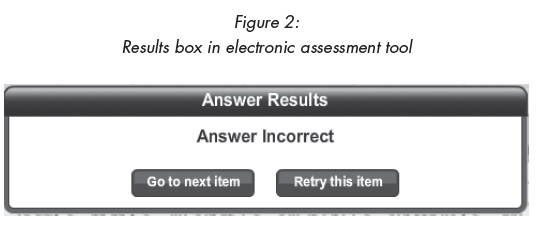 To reiterate, in order for the student to attain the correct answer in an electronic assessment, s/he should know exactly on which tab in MS Excel as well as on which icon on the ribbon to click. Additionally, the electronic assessment currently used at this HEI allows students three attempts at answering a question. If students do not answer the question correctly on either of the first two attempts, the message as displayed in Figure 2 below, appears on the screen.