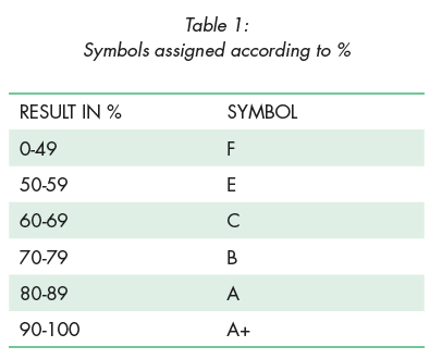 The data were analysed to determine the difference between the results obtained for the paper-based assessment and electronic assessment for each student respectively. In order to accomplish this, symbols were assigned to students' results obtained for each assessment as indicated in Table 1 below, to investigate whether there were any significant differences in the symbols obtained between the two assessment strategies used.