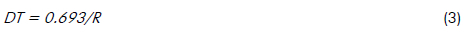 The formula below was used to calculate DT (Mahapatra, 1985):
