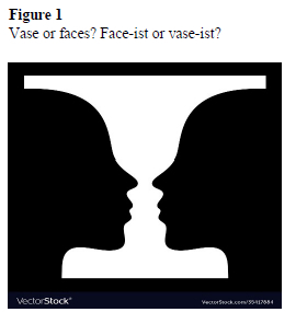 Figure 1 is a popular diagram often used in undergraduate psychology lectures to illustrate how one's perspective colours what one sees. Do you see a vase or do you see two faces? This figure, for me, captures what I feel is the basic mechanism for engaging critically with colonial education and pedagogy through a form of Derridian deconstruction. Now, for Derrida (1978, 2016), binaries do not hold and by focusing on the marginalised term (the vase, or the faces) one forces oneself to see the other, that which remained out of sight initially, but that is so clearly and obviously there when one decentres one's gaze. For Derrida, meaning is always deferred and different, never fixed in a final truth; in order to disassemble binary opposites, it is necessary to shift focus, to differ. It is in acknowledging the differences between them that one comes to see the entire picture as a whole. Here I disagree with Derrida in that certain knowledge(s) have epistemic weight that is guaranteed by being shared and located in a disciplinary home. This is not to say that meaning is indeterminately fixed for all time. Rather, the suggestion is that meaning can be fixed by being shared by members of a discipline in a socio-cultural time and place. This meaning may shift over time, but can be fixed at specific times. In the early 1970s the feminist movement's call for equal pay for equal work for women was radical and called for a decentring of the patriarchal view of men as primary and women as secondary. In the 21st century, however, the idea that women should not receive equal pay for equal work is archaic. The understanding of female competence has changed over the last few decades because feminsists have addressed the clear contradictions in the patriarchal system. If we think of decolonial thinking as addressing contradiction, we can see it as a call for a critique of colonialism from within; one identifies the contradictions within colonial thinking and decentres the fixed so-called truths. Of course, readers familiar with Marx and Engels's take on capitalism (identified as a colonial endeavour) will argue that it is the most dynamic of all systems and is able to maintain its central principle of profit over people by incorporating change, without changing the nature of capitalism. In the sense that capitalism is so dynamic, then, perhaps the decolonial turn points not to critiquing colonial thought and, consequently, capitalism, but rather signals another moment in the transformation of capitalism (Z. Davis, personal communication, February 5, 2024).