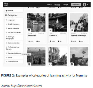 Figure 2 showcases examples of the various categories of learning activity available when using the Memrise application.