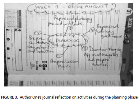 Guskey's (2002) second theme is change in teachers' classroom practices. This change may occur when teachers try to incorporate something new into their teaching practices or add technology to enhance their lessons. A change in classroom practices would possibly mean the future inclusion of these practices as part of the enacted curriculum. Author One initially employed traditional methods of teaching English comprehension, as outlined in 'Make Way for Generation Z' (Khoabane & Du Plessis, 2023), and conducted a pre-test. Subsequently, the impact of this approach was compared with the post-test results following the implementation of Memrise. The performance of the students is detailed in Table 2. Figure 3 shows a screenshot of a journal reflection on Author One's activities during the planning for the implementation of Memrise.