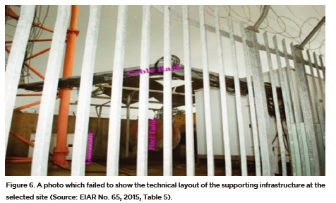However, despite their higher degree of visual realism and the different features shown on them, some photographs had shortcomings, thus minimising their visual quality. For instance, some failed to show important features such as roads, rivers, natural vegetation and mining ponds that were close to the sites. This means that their framing was inappropriate and important biophysical and socio-economic features were not shown. An example is shown in Figure 6, where the focus is on the security iron bars hiding the supporting BTS components such as fuel tanks, electrical cables and generators.