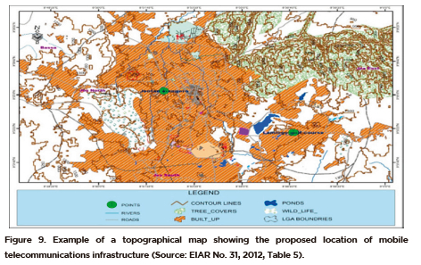 This study has examined the usefulness of spatial information presented in EIARs compiled for environmental impact assessments and the legal authorization of various mobile telecommunication projects (BTSs) in Plateau State, Nigeria. The precision and clarity of spatial information presented in such reports has the potential to communicate relevant knowledge and enhance dialogue amongst EIA specialists and the public, thus aiding environmental decision-making. The results show that most project locations in Plateau State were for the city of Jos, owing to its larger population size and its commercial functions. Peri-urban areas are less preferred for the siting of BTSs. Nonetheless, the environmental assessment of such infrastructure must be performed effectively so that environmental sustainability can be enhanced.