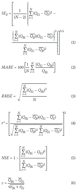 σBi is the standard deviation of the at-site benchmark discharge (m3/s) is the standard deviation of the estimated (indirect) discharge (m3/s).