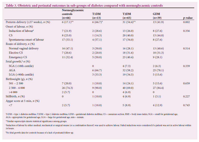 Comparison of obstetric and perinatal outcomes in women with diabetes at Steve Biko Academic Hospital