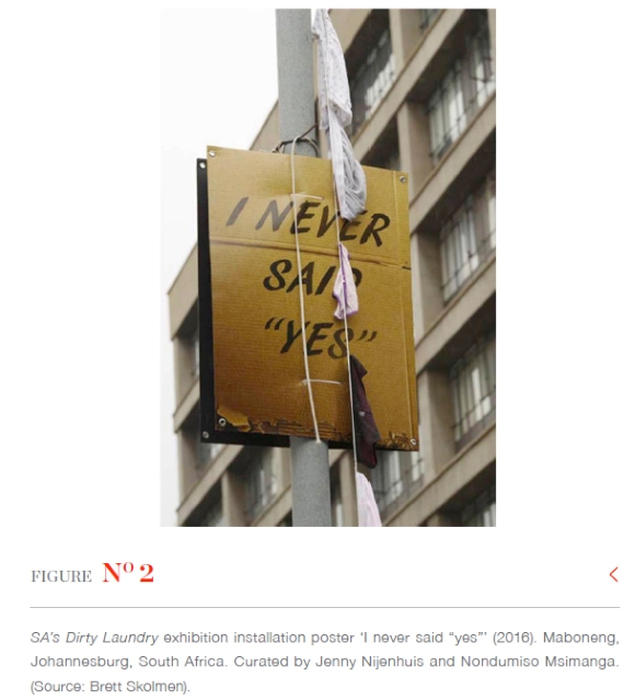 Keywords: Artivism, exhibition, rape, SA's Dirty Laundry, sexual violence, shame.