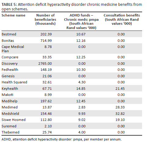 The general mental healthcare benefits indirectly assist people with ADHD who have other mental health comorbidities.13 The 21-day in-hospital admission (n = 102 medical scheme options) would not assist people with ADHD directly, but indirectly it could help them deal with comorbid conditions such as anxiety, depression or substance abuse, which is rife among ADHD patients.10