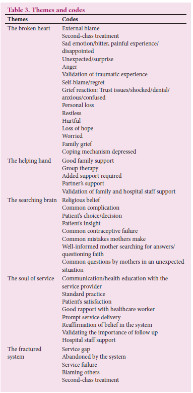 Five themes emerged from the women's experience of having a stillbirth (Table 3).