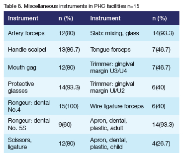 Keywords: Instruments, equipment, consumables, dental, Western Cape, public health