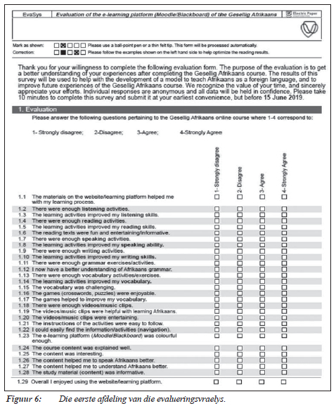 The literature study focused on the parameters of a language learning model, language teaching approaches and methods, theories on adult learning, and theories on language learning in an online (hybrid) teaching context. The literature study and the data gathered from respondents (needs analysis before course enrolment and evaluation questionnaire after completion of the (Gesellig Afrikaans) course) contributed to developing the suggested teaching model for language acquisition within a low-tech environment.