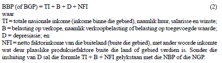 Die produksiemetode beraam die toegevoegde waarde wat die verskillende sektore bydra tot die BBP of die BGP, na gelang van die geval. Die formule wat gebruik word, is soos volg: