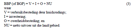 Die bestedingsmetode beraam die BBP of die BGP op grond van die besteding van die onderskeie sektore in die ekonomie. Die formule wat gebruik word, is soos volg:
