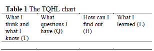 Another modification of the KWL strategy uses the TQHL chart (cf. Table 1). This chart was constructed and first reported by Zouhor, Bogdanovic, Skuban and Pavkov-Hrvojević (2017). The authors believed that it was convenient to make another adjustment to the original KWL chart in order to activate students' previously generated knowledge in the domain of physics, and to encourage them to present their own thoughts.