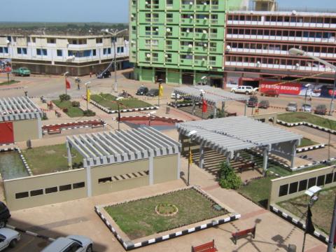 The plaza's importance is potentially marked partly by its position in relation to its immediate surroundings. To the east of the plaza are the two incomplete twin tower buildings, among the tallest in Malanje, which prior to independence were not finished by the major diversified conglomerate Sousa Machado Group. The towers show five floors of exposed brick, together with another floor and a half of open steel rebar and cement. The unfinished towers visibly testify both to the economic growth of the late colonial settler economy, its short-sighted ambition, and the turbulence of the postcolonial transition. The enclosed parts of the towers are inhabited and sit on top of a functioning complex of some importance. The ground floor has commercial shops, a bank and the offices of the notable Lusolanda car dealership. In between the ground floor and the towers are some offices of the provincial government, such as the Department of Commerce. Also there are the offices of the influential Malanje Old Guard League, founded in 1989 (known by its Portuguese acronym LIVEGUM, for Liga da Velha Guarda de Malanje).19