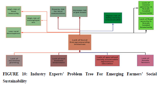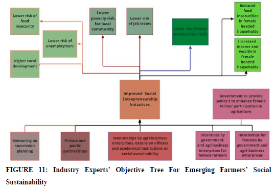 The industry experts identified several desirable ends for emerging farmers to achieve social sustainability, including (i) lowering the risk of food insecurity, unemployment, and poverty for local communities, (ii) reducing job losses, (iii) increasing income and wealth in female-headed households, and (iv) increasing rural development.