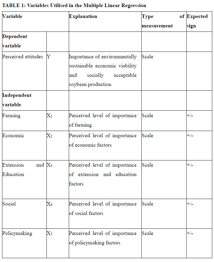Aliber and Hall (2012) stated that the government has increased the number of small-scale farmers from 250,000 in 2014 to 500,000 in 2020. Budgetary support was also provided for these farmers, such as an allocation of R2.38 billion to the Department of Agriculture for small-scale farmers' support programs in 2014. However, no study has outlined the impact of such initiatives on the perceived attitudes towards the sustainability of soybean production and the factors influencing sustainability. Its essential to consider various factors, including farming practices, economic influences, extension and education efforts, social dynamics, and policymaking decisions to ensure the long-term sustainability of crop production. These factors are interconnected and can positively and negatively affect sustainable agriculture.
