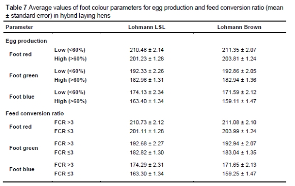 The overarching objective within animal production systems is to enhance sustainability by minimising the environmental impact. This involves improving the feed conversion ratio (FCR), mitigating production losses caused by environmental stressors, and extending the productive lifespan of animals (Hume et al., 2011 ; Gautron et al., 2021). The aim of this study was to establish an optimal culling methodology for identifying low-producing hens among both white and brown hybrid laying hens. Its primary goals were to remove low-performing hens from the flock and improve economic sustainability by maximising the utilisation of productive genetic material. Utilising a digital camera and spectrophotometer, the study assessed colour changes in the hens' combs, beaks, and feet, and measured body temperature with a thermal camera. In this study, both colour change and temperature were associated with productivity, indicating that these objective techniques offer an innovative method for identifying and culling low-performing hens. This study therefore has the potential to contribute to the development of technological systems for discerning productive and unproductive hens through objective methods.