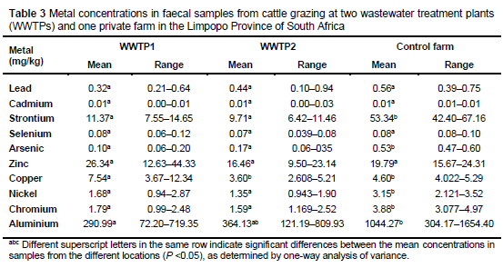 Assessment of heavy metal contamination in faeces of cattle grazing in wastewater treatment plants in Limpopo Province, South Africa