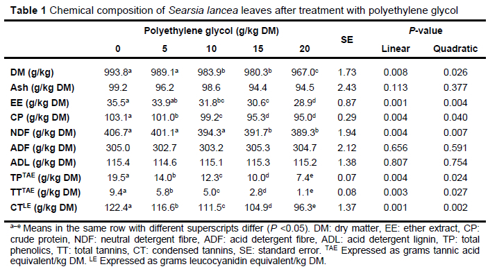 Short communication: Effects of polyethylene glycol treatment on the chemical composition and in vitro dry matter degradability of Searsia lancea leaves