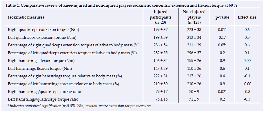 Comparative isokinetic knee strength analyses of knee injured players and non-injured knee players
