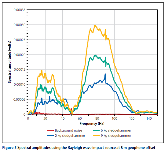During the Spectral Analysis of Surface Waves (SASW) tests, it is essential to consider the signal-to-noise ratio (SNR) of the impact source's signal, as the energy of the signals deteriorates with distance. To enhance the SNR, SASW employs geometrical array configurations and stacking (repeated shots).