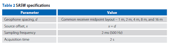 Tables 1 and 2 present the different experimental arrangements that were used for the CSW and SASW tests.