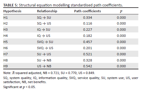 The SQ construct was tested with 11 questions focussed on functionality, usability, availability, reliability, responsiveness, and navigation (Kurt et al. 2022; Nani & Lina 2022; Rahman & Ekaputri 2021).