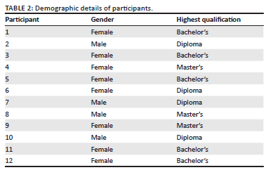 The participant demographics, as shown in Table 2, have two implications for the study. Firstly, the gender distribution of the participants, with four males and eight females, indicates a relatively balanced representation of gender within the organisation. Secondly this, is important because it allows for a diverse range of perspectives and experiences to be captured in the study, potentially leading to more comprehensive and nuanced findings.