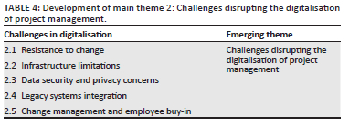The third objective of the study sought to ascertain the key success factors for the digitalisation of project management within the South African mining industry. Table 5 illustrates the development of the emerging main theme 3: key success factors for the digitalisation of project management.