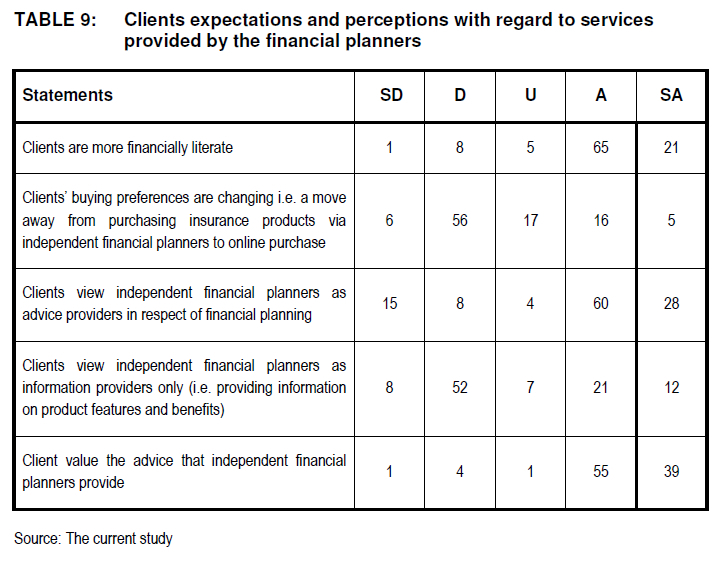 ■ Finally, further research should be conducted amongst consumers or purchasers of insurance products to determine their perceptions and expectations of the financial planning industry.