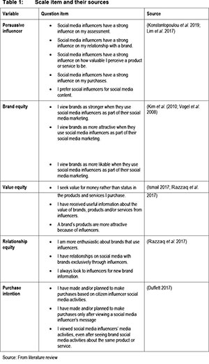 Riedla and Von Luckwald (2019) state that more and more advertising spending is flowing into social media influencer marketing (SMIM). However, research on the effectiveness of SMIM is still relatively scant (Godey, Manthiou, Pederzoli, Rokka, Aiello, Donvito & Singh 2016; Haenlein and Kaplan 2010; Schaefer 2012), which give rise to a lack of understanding of its' contribution to organisational success (Konstantopoulou, Rizomyliotis, Konstantoulaki & Badahdah 2019). Other researchers that attempted to explain the success of celebrity influencers concentrated on the choice of social media platforms (Ismail 2017; Roy & Jain 2017). Consequently, existing literature pays insufficient attention to how the persuasiveness of an influencer affects customer equity (brand, value, and relationship equity) and customers' purchase intentions. In addition, none of these few pieces of research have covered the African context (Kim & Ko 2012; Yadav & Rahman 2018). This study responds to these knowledge gaps by empirically investigating the effectiveness of influencers on brand, value, and relationship equities, and, on consumers' purchase intentions. It aims to determine how influencer marketing contributes to social media marketing effectiveness by exploring consumers' responses to influencer social media posts within the South African context. This will be realised by measuring the persuasive influencer's effect on customer equity drivers; which are relationship equity, brand equity, value equity, and purchase intentions.