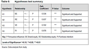 3.4 Influencer persuasiveness and brand equity